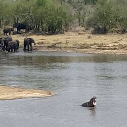 Diana and I could not resist a quiet day to enjoy the beautiful lodge. The rest were out for a 6am start again, and we're rewarded with a very successful game drive. The Kruger river was active withBaca lagi