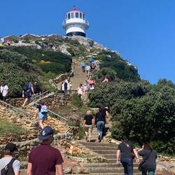 We travelled along the beautiful Chapmans Peak Drive today. Through beautiful seaside towns with ostrich and baboons greeting us along the way. A lunch break at Boulder Beach was a fun stop to see theBaca lagi