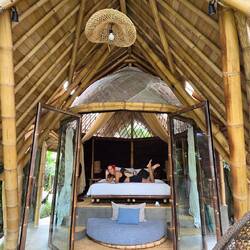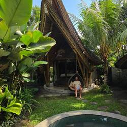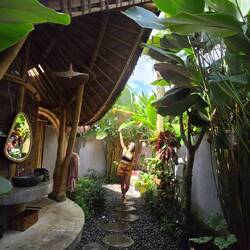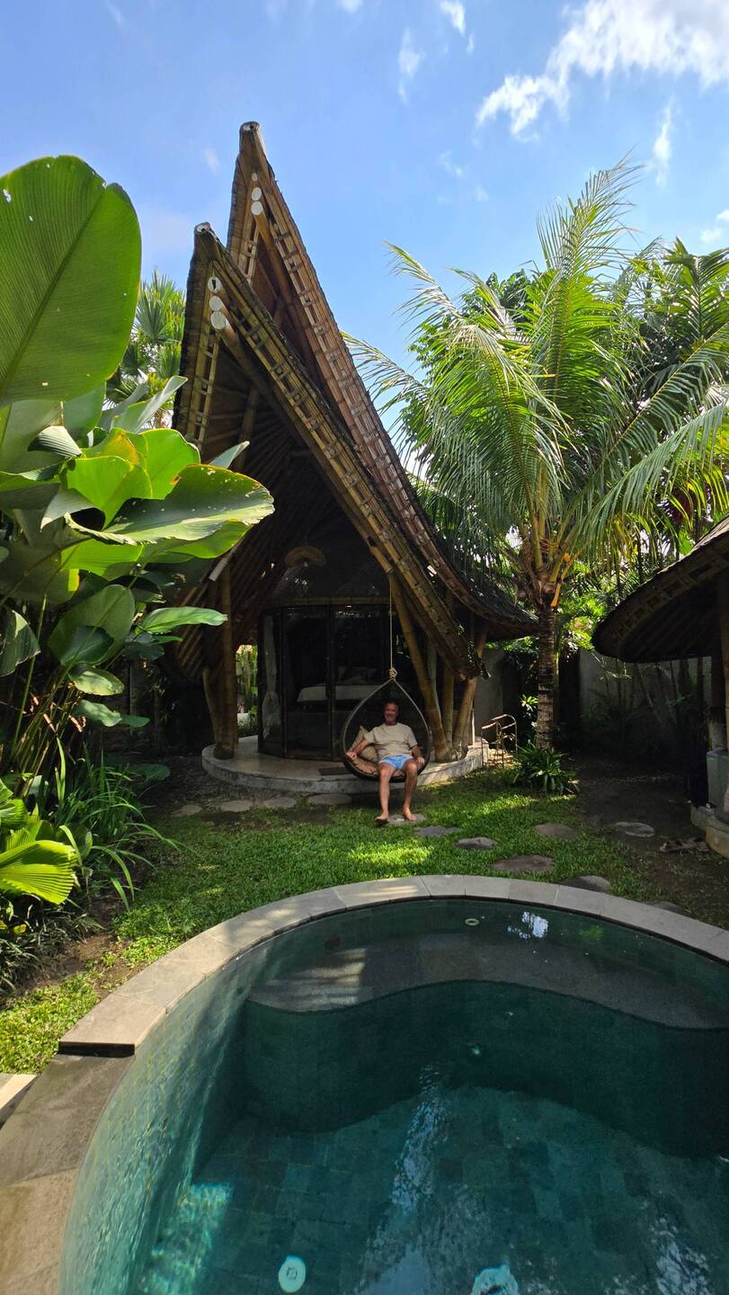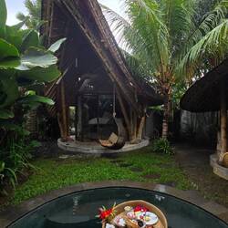 BaliTanoRescape 26. maj 2024, Indonesien ⋅ ☁️ 29 °C Cabaña de bambú en la jungla cerca de Ubud Se oversættelse0 synes om Rejse