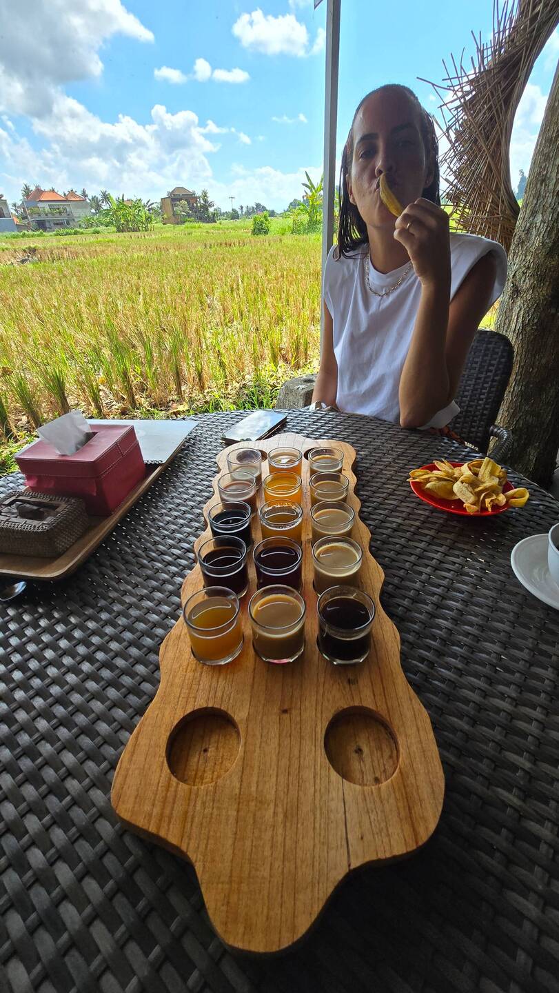 Café recién tostado, terrazas y piscinas frente a los arrozales