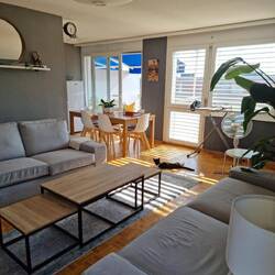 El apartamento de Irene en Crissier, cerca de Lausanne. Cubana, muy amable. Nos permitió dejar el equipaje fuera del horario.