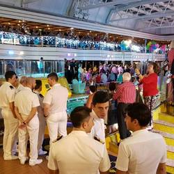 Während der 7 Seetage überqueren wir zum zweiten Mal den Äquator. Dies wird jedesmal mit einer Party zelebriert. 😅