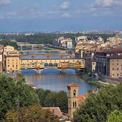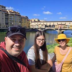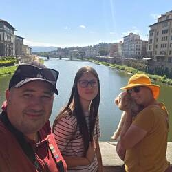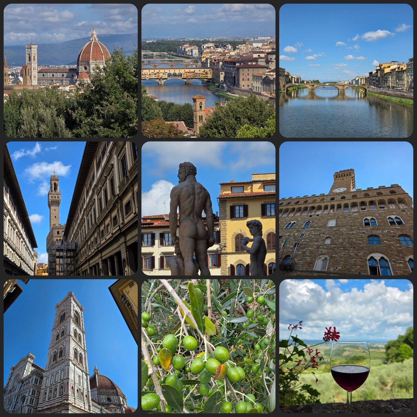 Pot od doma do osrčja Toskane je dolga, danes smo naredili cca 640 km, a hkrati ponuja čudovito priložnost za opazovanje spreminjajoče se pokrajine. Slovensko zelenje so postopoma zamenjale ravnice Furlanije, nato pa so se v daljavi že začeli risati obrisi Apeninov. Vožnja na katero smo krenili ob 3.30, je minila hitro, vmes postanek ali dva in ob 10 uri smo že bili na prvi postaji - Firence, zibelka umetnosti. Za florentinski zrezek je bilo prezgodaj, smo pa si prvo mesto pogledali iz panorame, parkirali 100m stran od Ponte Vecchio in se sprehodili skozi staro mestno jedro.Mesto diha z zgodovino in umetnostjo na vsakem koraku. Pot nas je vodila preko Ponte Vecchio preko reke Arno. Stari most, ki je preživel vse vojne vihre. Značilne trgovinice, ki se gnetejo na njem, so danes polne bleščečega nakita, a mi smo raje uživali v pogledu na reko in pisane fasade hiš, ki se zrcalijo v vodi.