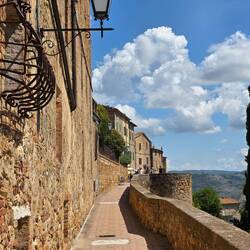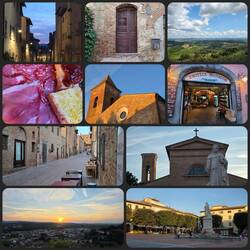 San Gimignano je bil naša druga postaja danes. Že od daleč smo zagledali znamenito panoramo mesta, ki jo rišejo visoki srednjeveški stolpi. Nič čudnega, da mu pravijo "Srednjeveški Manhattan". V času največjega razcveta je mesto krasilo kar 72 stolpov, ki so jih gradile bogate družine kot simbol svoje moči in bogastva. Do danes se jih je ohranilo 14, kar je še vedno dovolj, da ustvarijo edinstveno in nepozabno podobo. Sprehodili smo se po glavni ulici, ki vodi od enih mestnih vrat do drugih, in ves čas občudovali stolpe, ki se dvigajo visoko nad ozke ulice. Na Torre Grossa, najvišji stolp v mestu, od koder se odpira 360-stopinjski pogled na mesto in okoliško pokrajino nismo šli, smo pa šli na Piazza della Cisterna, kjer je očarljiv trikotni trg z vodnjakom v sredini in je družabno središče mesta. Obkrožen je s srednjeveškimi hišami in stolpi ter je popoln kraj za počitek ob najboljšem sladoledu na svetu. Gelateria Dondoli, ki se nahaja na tem trgu, je namreč večkratna svetovna prvakinja v izdelovanju sladoleda in vrsta pred njo priča o kakovosti. Preizkusili smo sicer sosednji sladoled, na Dondolija še morda pridemo.