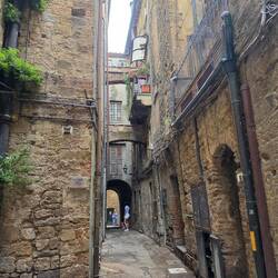 Ko smo se spomnili, da je čas za kosilo, smo pojedli, si privoščili še popoldanski počitek in ko se je popoldansko sonce nekoliko umirilo, smo se odločili za kratek izlet. Želeli smo obiskati kraj, ki je blizu, a ponuja nekaj posebnega. Izbira bil Certaldo Alto, čudovito ohranjeno srednjeveško mestece na vrhu hriba, ki je najbolj znano kot dom in zadnje počivališče slavnega pisatelja Giovannija Boccaccia, avtorja Dekamerona. Do starega mestnega jedra se lahko se povzpneš na najbolj očarljiv način – s starinsko vzpenjačo (funicolare), ki v nekaj minutah premaga strm klanec. Ker pa zahtevajo za psa nagobčnik, bomo se peljali verjetno na večerjo zadnji dan. Na spodnje, moderno mesto in okoliško pokrajino se razprostira lep pogled. Certaldo Alto nas je takoj očaral. Mesto je skoraj v celoti zgrajeno iz rdeče opeke, kar mu daje topel in enoten videz. Sprehod po glavni ulici, Via Boccaccio, je bil kot potovanje v 14. stoletje. Tukaj ni trgovin s spominki na vsakem koraku, ampak pristen, umirjen utrip. Res mir in nobene gneče.