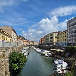 Livorno nas je na nek način presenetil. To ni tipično toskansko mesto z renesančnimi palačami, ampak živahno, pristno pristanišče z edinstvenim značajem. Ustanovljeno v 16. stoletju kot "idealno mesto" Medičejcev, je bilo zamišljeno kot svobodno pristanišče, ki je privabljalo trgovce z vsega sveta. Ta multikulturna dediščina se čuti še danes. Malo smo šli pokukati v osrednjo mestno tržnico. Verjamem, da je včasih tukaj bilo živahno vzdušje, stojnice, polne svežih rib, morskih sadežev, lokalne zelenjave in sirov, ampak, nekako ni bilo tistega pravega občutka tržnice. Ogromno stojnic zaprtih, skratka, pričakovali smo več. Nadaljevali smo v verjetno nekdaj očarljivi četrti, prepredeni s kanali, mostovi in visokimi pastelnimi hišami. Sprehod ob kanalih nas je, kljub imenu “Male Benetke”, bolj spominjal na Trst. Potem smo šli skozi mesto ob obali na kosilo in mini nakup, ter počasi nadaljevali naprej. Livorno nas odkrito ni navdušil.