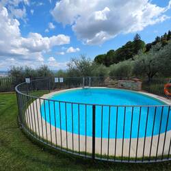 Ura vožnje in skozi cesto, ki se vije preko gričev, mimo ogromnih cipres, nasadov oljk in vinogradov, pridemo do našega toskanskega doma v mali vasici Pancole. Casa Lari, kakšen mir. In razgled. To samo apartma, to je obljuba miru, sprostitve in pristnega toskanskega življenja. 70m2 v dveh nadstropjih, dve kopalnici, tri terase in bazen, pa garaža pod spodaj za avto. Pa mir, res mir, tišina in rahel zvok škržatov. Gostitelj nam je dal še steklenico Chiantija za dobrodošlico in čas je za kozarec vina na balkonu s pogledom na toskansko pokrajino.