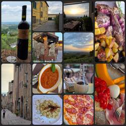 Kot se za praznovanje spodobi, pa je bil večer rezerviran za posebno kulinarično doživetje. Izbral sem Agriturismo Nonna Bianca, kraj, ki je obljubljal pristno toskansko kuhinjo, pripravljeno s srcem in z lokalnimi sestavinami. In obljuba je bila izpolnjena. Večer ob dobri hrani smo preživeli na lepi terasi s pogledom na toskanske griče, ki so jih barvali zadnji sončni žarki. Vzdušje je bilo domače, toplo, sproščeno. Paradižnikova domača juha, pršut, melona, Florentinski zrezek, lasagna, sladice in Chianti. Siti, zadovoljni.