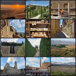 Že sama pot do tja je doživetje. Ko zapustiš glavne ceste, se odpre pokrajina, ki jo poznaš iz filmov, razglednic in sanj. Valoviti griči, posejani z zlatimi pšeničnimi polji, se prelivajo drug v drugega, med njimi pa kot stražarji stojijo vitki stebri cipres. Vsak ovinek prinese nov, še lepši pogled. Ustavljali smo se kar pogosto samo za se praktično ujetje teh trenutkov v objektiv. Val d'Orcia, ki je pod zaščito Unesca, je resnično kraj, kjer narava in človek sobivata v popolni harmoniji.