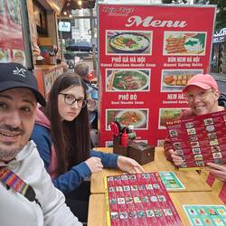 In ko končamo nakupovalni pohod, še odpešačimo skozi ta kaotični promet do Bui Vien walking street, najbolj znano ulico po lokalih in nočnem življenju. Cene navite, seveda polovico lokalov zaprtih, ker še ni večer, ampak dovolj za videti, spiti pivo in potem malce stran, odlično kosilo. Nazaj smo si privoščili taxi, preko aplikacije Grab, kar je njihova verzija Uberja. Celih 1,77 EUR nas je stala vožnja.