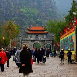 Apnenčaste gore, ki se dvigajo iz riževih polj, ustvarjajo dramatično in edinstveno pokrajino, ki spominja na Halong Bay, vendar na kopnem. Ninh Binh je bolj umirjen in manj turističen kot nekateri drugi deli Vietnama, kar vam omogoča, da resnično uživate v naravi in sprostitvi. In tudi več kot dobrodošel bo ta mir. Škoda, da samo za en dan. Ninh Binh je bil prva prestolnica Vietnama v 10. in 11. stoletju. Aktivnosti je ogromno, obiščete lahko starodavno prestolnico Hoa Lu, se vozite s čolnom po rekah in jamah, kolesarite po riževih poljih, plezate na razgledne točke in raziskujete naravne rezervate.