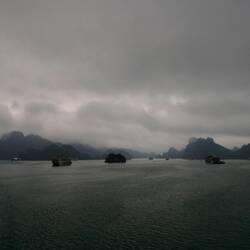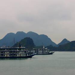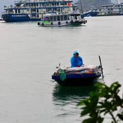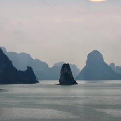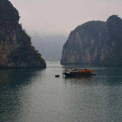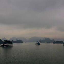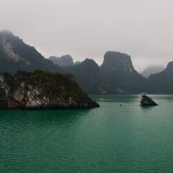 Halong Bay je vietnamski biser, je pravljična pokrajina, ki očara s svojo nezemeljsko lepoto. Tisoči apnenčastih kraških otokov in otočkov (skupaj jih je 1969), ki se dvigajo iz smaragdne vode Tonkinškega zaliva, ustvarjajo labirint čudes, ki ga morate doživeti vsaj enkrat v življenju. Vožnja s tradicionalno džonko med temi kamnitimi velikani, raziskovanje skrivnostnih jam, kopanje v skritih lagunah in uživanje v sončnem zahodu nad zalivom so le delček čarobnosti, ki vas čakajo v Halong Bayu. Mi zaradi vremena ne bomo deležni perfektne izkušnje, ampak vseeno. Je oblačno, malo prši, ampak še vedno lepo.