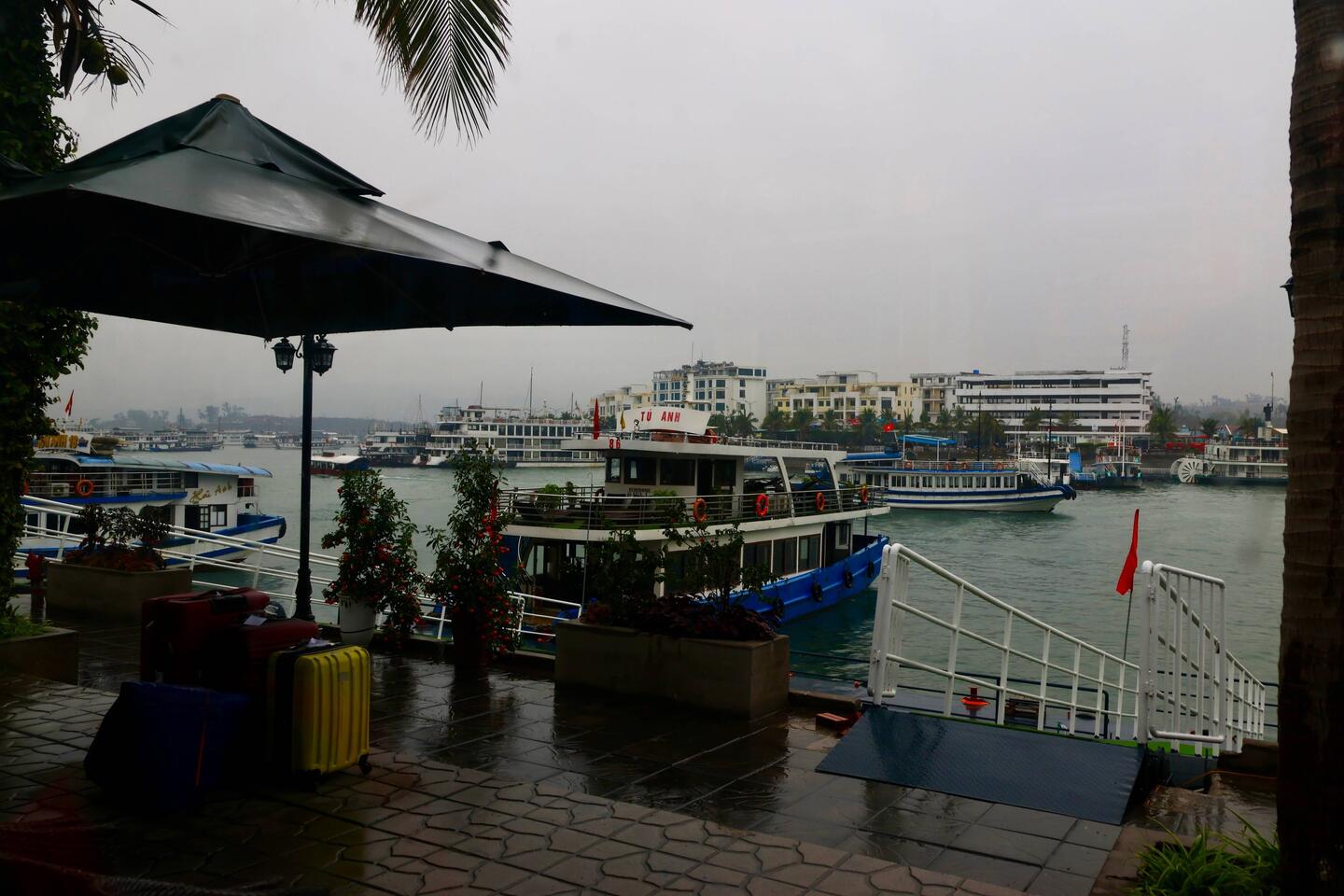 Prebujanje zgodaj zjutraj , v popolno tišino narave, ki jo začnejo buditi zvoki zbora petelinov iz okolice, zvoki živali iz vseh gozdov tukaj okoli. Popolnoma drugačen občutek, ko ni zvoka prometa in mesta. Lepo. Pripravijo nam zajtrk za po poti in ob 7.00 nas pobere naš prevoz. Luksuzni, kot se za danes spodobi. Vsak svoj udoben sedež, z masažo v stolu. Udobno potujemo danes, čeprav celo pot dežuje. Čez dobre štiri ure vožnje smo v Ha Long Bayu, ki je postal ena ogromna marina, kjer domujejo pisarne vseh križarjenj, ki se tu ponujajo.