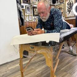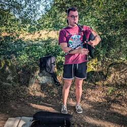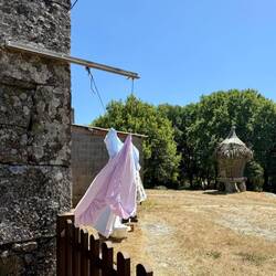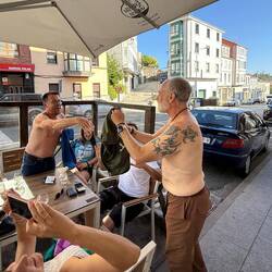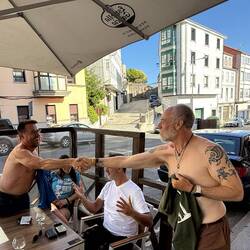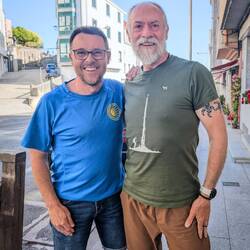 * We connected again this evening with a photographer we met after leaving O Cebreiro several days ago. This is his 26th Camino. I mentioned to him that I liked his shirt, which ended up being a silhouette of one of his self-portraits at the Cruz de Ferro. Then he asked if I wanted to swap shirts! What a gift! I will treasure this memory and this shirt from Juan Carlos.Read more
