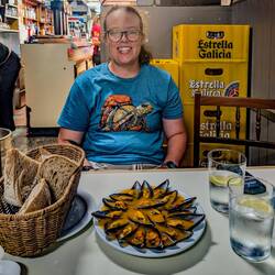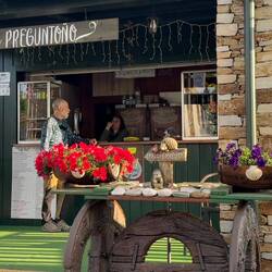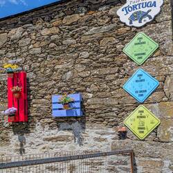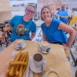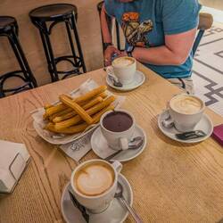 The following day, Bonnie and I had a list of chores to complete before leaving Santiago - a big breakfast including specialty coffee, eating churros with a cup of melted chocolate, finding pastel de natas, washing our laundry, and to purchase a couple of souvenirs. I had read about a shop, A Rua Recordos, that "has everything that a pilgrim needs.”