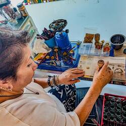 After we had paid for our trinkets and were getting ready to leave, he came around the counter and handed both Bonnie and I a slip of paper to read. It was the story of Mocho the toymaker who would give out toy hands to pilgrims that he found exhibited the character of true pilgrimage. You cannot buy these symbols; they have to be given. Then, in the special fashion they are awarded, he shook both our hands, putting one of the mementos in each of ours.