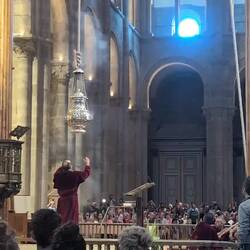 When we arrived in Santiago at the end of our epic Camino, Bonnie and I went to the Pilgrims’ Office to turn in our credentials with all of the stamps we had collected along the Way. Once they checked to make sure we visited all of those places (and hadn’t done so on an electric bike), they put in one last stamp, this one from the Cathedral, and returned it to us. It is an accordion of sacred memories.