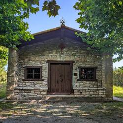 At one of these picnic benches we met three female pilgrims from Romania. We noticed that one, named Diana, was walking barefoot! I was flabbergasted, but she said it helps her connect to the Earth and that she's conditioned her feet. She mentioned that when she started, even sand tickled her feet, but now she can walk over almost anything! Unfortunately, this afternoon, we saw her heading back up the trail towards us. We asked what was wrong, and she said she lost one of her sandals! She had decided it was best to put her sandals on when she got to the hot pavement, but one was missing. She was literally wearing just one sandal! Her other Romanian pilgrims were waiting with her further down the path with her backpack while she searched for the lost shoe.
