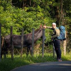 The best addition to my backpack this year is a photo of my friend Wade, whose face peeks out of the eyeglass pouch on my left strap. Wade is experiencing some health issues that prevent him from walking the Camino himself, so I am keeping him and his wife, Jill, close to my heart as I walk in proxy for him. You may see his face popping up throughout this journey.