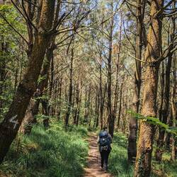 We had several amazing views of the coast today under another cloudless sky, while at other times the forest we passed through was so thick you would have had no idea you were near the ocean. Many locals take to these trails for exercise, and there are scattered picnic benches along the way for people to enjoy.