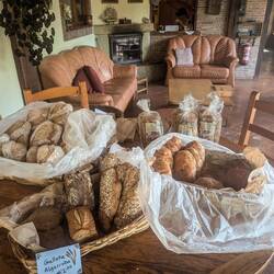 Halfway through our trek we came upon a sign welcoming pilgrims to come up the hill for rest and refreshment. I hadn’t read about this place in any of the guidebooks. The owner said he ran an albergue for pilgrims and that they also bake their own sourdough bread in a wood fire stone oven. I was a little sceptical, fearing that he kidnapped pilgrims who wandered by his place and ate them after preparing them in the oven, but he turned out to just be a baker. We ate our second breakfast and had our third cup of coffee because we have learned to never pass by an open cafe on the Camino.