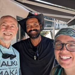 “We did too! Funny that we are just meeting now while we are on a boat and not walking!”