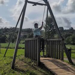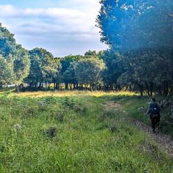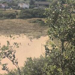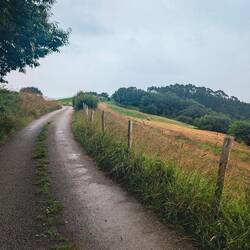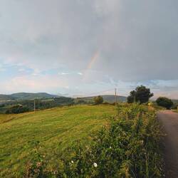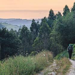 Today’s walk was spectacular, first giving us views of the coastal town we had just left, then up through farms with produce and livestock, including an emu who wanted to eat me. We then walked along a river for miles and miles before finally getting deposited at our first albergue on this route. We are staying with other crazy pilgrims making this journey, sleeping in an attic full of bunk beds, eating the local chickpea stew, salad, and rice pudding at a community meal, and feeling extremely grateful for this incredible opportunity.