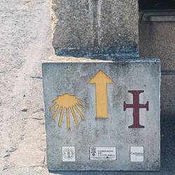 There is a scallop shell on my backpack. This is an iconic symbol of the Camino and identifies the bearer as a pilgrim. The Camino routes are marked with yellow arrows and shells that help guide the way to Santiago. My shell happens to be white and is missing the red St. James Cross. While this cross and sword symbol is important to Spain and Catholicism, it is also connected with the wars against the Moors and the mythic fable that St. James returned in the 9th century from heaven on a horse to defeat the Muslims. I’m not interested in wearing icons that combine religion and warfare, as my battle isn’t against other people. I’d rather build bridges.