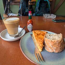 Even a stop at a place I knew to be a religious cult, based on reviews I had read online, became an opportunity for reframing. While their fear-mongering message plastered across their bus parked behind the cafe was unappealing - “Are You Prepared for what is Coming?”, their location was perfect for a break. They offered homemade cheese, bread, brownies and fresh fruit juice. They even had an espresso machine for my midmorning fix. The staff's genuine hospitality to all pilgrims was a stark contrast to my less-than-enthusiastic cathedral experience from yesterday. It was a valuable lesson in finding good in people where you might not expect it.