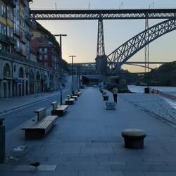 I read for a while, gathered myself and my few things, and headed to the Cathedral at six. Porto streets are quiet in the morning, especially after a raucous Friday evening when the city was reveling with locals and guests celebrating that they were in Porto. Some of the partiers were still in the streets. The Cathedral grounds were deserted and I didn't waste any time or sentiment before heading down back-alleys and staircases to get to the river.
