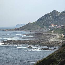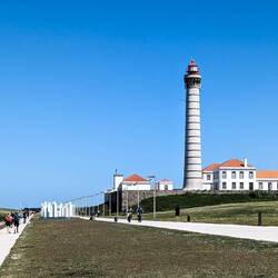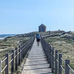 I can see the mouth of the river, and then the ocean horizon. There are maybe five pilgrims ahead of me. They take a sharp right and head up the coastline. I walk out to visit the lighthouse. I am not in a hurry.