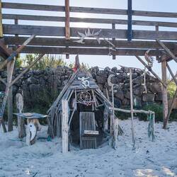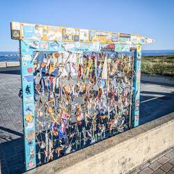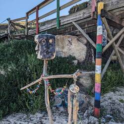 Where the boardwalk ends with warning tape you have no choice but to head into the sand. It is slow, it takes effort, and it gets in your shoes. It also takes you places where the boardwalk doesn't lead, including an art gallery of things washed up by the ocean and repurposed by artists.