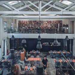 Tonight I ate dinner at Theatro - a building that was once a theater and has now been reimagined into a restaurant, wine bar, bookstore and art gallery.
