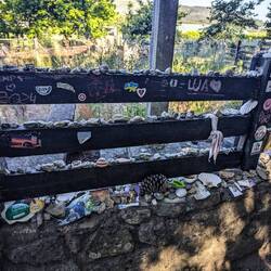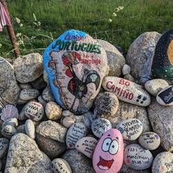 I didn't really expect to find our names still there - and they weren't - time and paint had covered them up and now there were new greetings to other pilgrims in their place. However, the good will of that initial gesture still filled me with joy and got me skipping up the Way.
