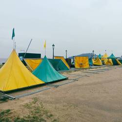 The beaches are full of sunbathers, families, and people playing sports. It is the weekend and the locals are making the best of it. Almost everyone has a barrier set up next to their towels. It isn't for privacy, but the wind. But oh how I love the sea breeze! It made walking in the high 80's today very tolerable. My dermatologist will be pleased- I'm wearing long sleeves and pants that are rated to 50 SPF and I keep my hat on while I'm in the sun.