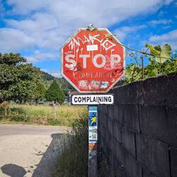 So it was with appreciation as I was processing this all during my walk that I came to a traffic sign that announced, "STOP Complaining." I asked the pilgrim near me if she could see it too. She said she could. I'm still taking it as a sign for me.