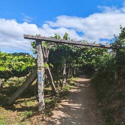 Of course there were wonderful things about today's stage. I'm on the Camino. I'm less than 50 KM to Santiago. I have a bed tonight. I am healthy. My blister doesn't bother me. The sun is out but it is not too hot. The path took us under a grape vine trellis. I found a Turkish restaurant for dinner. My albergue has a pool.