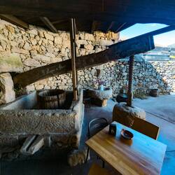 I decided not to stay in Padron but walk another 90 minutes to get closer to Santiago and shorten tomorrow's stage. I found an old farm house that had been converted into an albergue that even has an old wine press. They advertised a community dinner and that sounded like a great way to spend my last night on the Way. Surprisingly there are only five of us here tonight - An italian woman, A father and son team from Ireland, a dental hygienist from Seattle, and me. Tomorrow night this place is booked full, but tonight was a more intimate gathering.