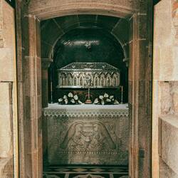 When I was here two years ago I didn't tour the cathedral. I did this year, surprising the bad tempered woman at the front desk who has a reputation of being short with pilgrims. "A stamp and a tour, please." I asked her, sliding over my credential.