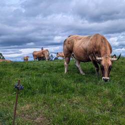 Though there were tastes of the inclines that make this the most difficult of Caminos, today went very smoothly, most of it being taken up in conversation between the two of us. We also did a lot of talking to the animals we met along the way.