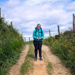 And then I got chills because I realized who she was. This woman walks with a little hitch in her giddyup. Back in April Nancy had interviewed a woman named Nysie who has multiple sclerosis. She was diagnosed 10 years ago and had put aside a dream to walk the Camino. This year she decided to do it regardless of the additional challenges of her physical condition. On the podcast episode she shared she would be walking from Le Puy, France before joining the Frances route and would be walking for about three months.