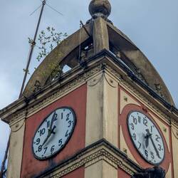 Languages are so fun. Pick your favorite translation: "Wayfarer look at the time and follow your path." Or "Traveler look at the hour and continue on your way." Or my favorite (from Google Translate): "Look at the traveler and go on your way."