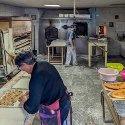 I surprised Bonnie as we were leaving the small town with the cafe. We had departed the path to get to the cafe and she thought we were just heading back to it. However I ducked into an alley between two industrial buildings and knocked on an unmarked door. Bonnie was asking me what in the world I was doing when a woman opened the door and I inquired if this was the empanada bakery. She nodded yes and ushered us just inside the door. This bakery doesn't have a retail front. I think they just make and bake the empanadas at this location and they are sold elsewhere. I had read about them online and took a chance that they would sell us a fresh empanada for our lunch as there were no open stores for the next 20 kilometers. They put up with us invading their bakery and we left with a bacon and apple empanada secured in my lunch bag on the back of my backpack. We paid them well with Euros and pilgrim's genuine gratitude.