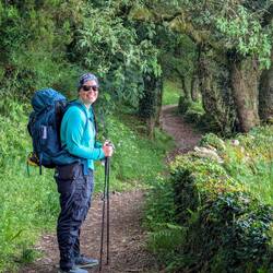 I engaged Isabel regarding the forecast. We wanted to take the Hospitales route but had been warned not to if there were thunderstorms as there are no shelters if there is lightning. I mimed thunder and lightning which made her laugh. She looked up the weather report on her phone and it showed rain all day, but thunderstorms would start at 2pm.