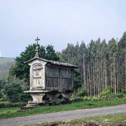 Surprisingly enough we didn't meet very many Pilgrims. We did have a late start out of Oviedo so they could have been in front of us. We met a man from Denmark at our second open cafe. It was his first Camino and he was taking in the scenery like he had a new set of glasses. We also met a couple from Miami as we were going up an incline. They told us, with heavy breathing, that they didn't have mountains back home to practice on.