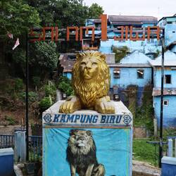 Gegenüber des „Rainbow Villages“ sind alle Häuser ausschließlich blau bemalt. Das Viertel wurde zu Ehren des lokalen Fußballclubs „Arema FC“ gestaltet. Blau ist nämlich dessen Vereinsfarbe und Symbol für Stolz und Zusammenhalt in Malang.