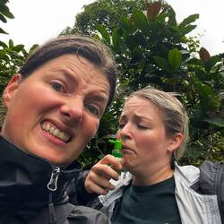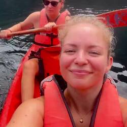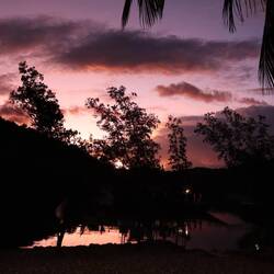 Nachdem unser Chefkoch wieder ein hervorragendes Essen servierte, machte die Crew eine kleine Feuershow und danach ging es dann auch in die Hütten. Xenia musste für mich alles ableuchten – die riesige Totenkopfspinne aus der Dusche brauchte ich wirklich nicht in der Nacht in meinem Bett. 🫣 Nachdem die Luft rein schien, legten wir uns ins Bett – noch nicht ahnend, dass uns die Auswirkungen dieser Nacht noch etwas begleiten werden – dazu aber später mehr. 😅Læs mere