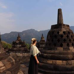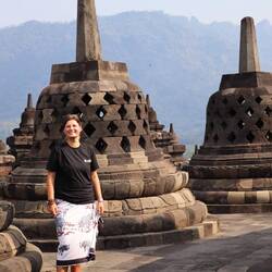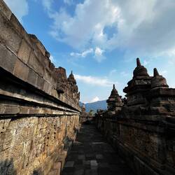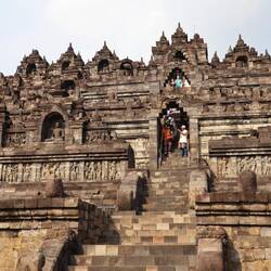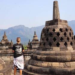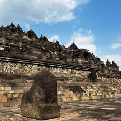Der Borobudur entstand im 8.–9. Jahrhundert unter der Sailendra-Dynastie. Nach dem Niedergang des Buddhismus auf Java wurde er über Jahrhunderte von Dschungel und Vulkanasche bedeckt und erst im 19. Jahrhundert wiederentdeckt. Unter niederländischer Kolonialherrschaft begann eine erste Restaurierung am Anfang des 20. Jahrhunderts. Richtig umfassend restauriert wurde der Tempel dann erst in den 70er und 80er Jahren unter der Federführung der UNESCO. Mittlerweile ist der Borobudur nämlich auch als UNESCO Weltkulturerbe ausgezeichnet und das aus meiner Sicht absolut zurecht! Selten hat mich ein Bauwerk so beeindruckt wie dieser Tempel.
