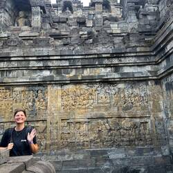 Nachdem unser Guide eintraf und unsere Gruppe vollständig war, liefen wir circa 15 Minuten zum Borobudur. Bereits aus der Ferne war ich zutiefst beeindruckt. 🤩