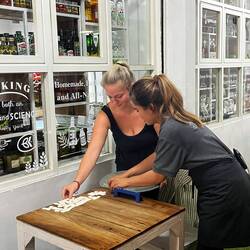 Batik ist weit mehr als nur Stofffärben: Es ist eine uralte Kunstform, bei der mit heißem Wachs feine Muster auf Stoff gezeichnet werden, bevor dieser in Farben getaucht wird. Jede Region in Indonesien hat dabei ihren eigenen Stil – in Ostjava sind die Designs oft eher kräftig, detailreich und erzählen Geschichten aus Natur oder Mythologie. Während wir mit der Wachspfeife vorsichtig Linien zogen – mal mehr mal weniger schön 😅 wurde uns klar, wie viel Geduld und Können hinter jedem Stück Stoff steckt. Diese Techniken sind ein wichtiger Bestandteil der kulturellen Identität Indonesiens. Es war eine total coole Erfahrung, aber auch super anstrengend. Die präzise Arbeit und immer wieder zu merken, dass es niemals so schön wird wie von den Einheimischen hat etwas an unserem Perfektionsmus gekratzt. 😅 Am Ende waren wir dann aber doch ganz zufrieden mit den Ergebnissen. Die Tücher nahmen die beiden dann mit und färbten diese noch für uns ein. Das Endergebnis bekommen wir dann morgen. ☺️